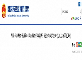 國家藥監(jiān)局關(guān)于調(diào)整《醫(yī)療器械分類目錄》部分內(nèi)容的公告(2022年第30號) 為進一步深化醫(yī)療器械審評審批制度改革,依據(jù)醫(yī)療器械產(chǎn)業(yè)發(fā)展和監(jiān)管工作實際,按照《醫(yī)療器械監(jiān)督管理…