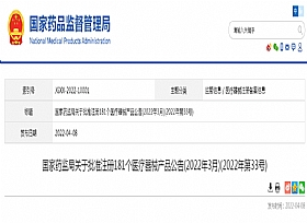 國家藥監(jiān)局關(guān)于批準(zhǔn)注冊181個醫(yī)療器械產(chǎn)品公告(2022年3月)(2022年第33號) 2022年3月,國家藥品監(jiān)督管理局共批準(zhǔn)注冊醫(yī)療器械產(chǎn)品181個。其中,境內(nèi)第三類醫(yī)療器械產(chǎn)品138個,進口…